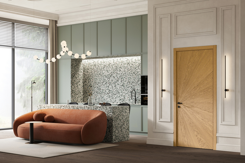 Сочетание лучших технологий и материалов предотвращает деформацию полотен глухих межкомнатных дверей из натурального шпона и повышает звукоизоляцию до 25 дБ, в то время как универсальная коробка с трехконтурным уплотнителем поддерживает герметичность, защищая от сквозняков.