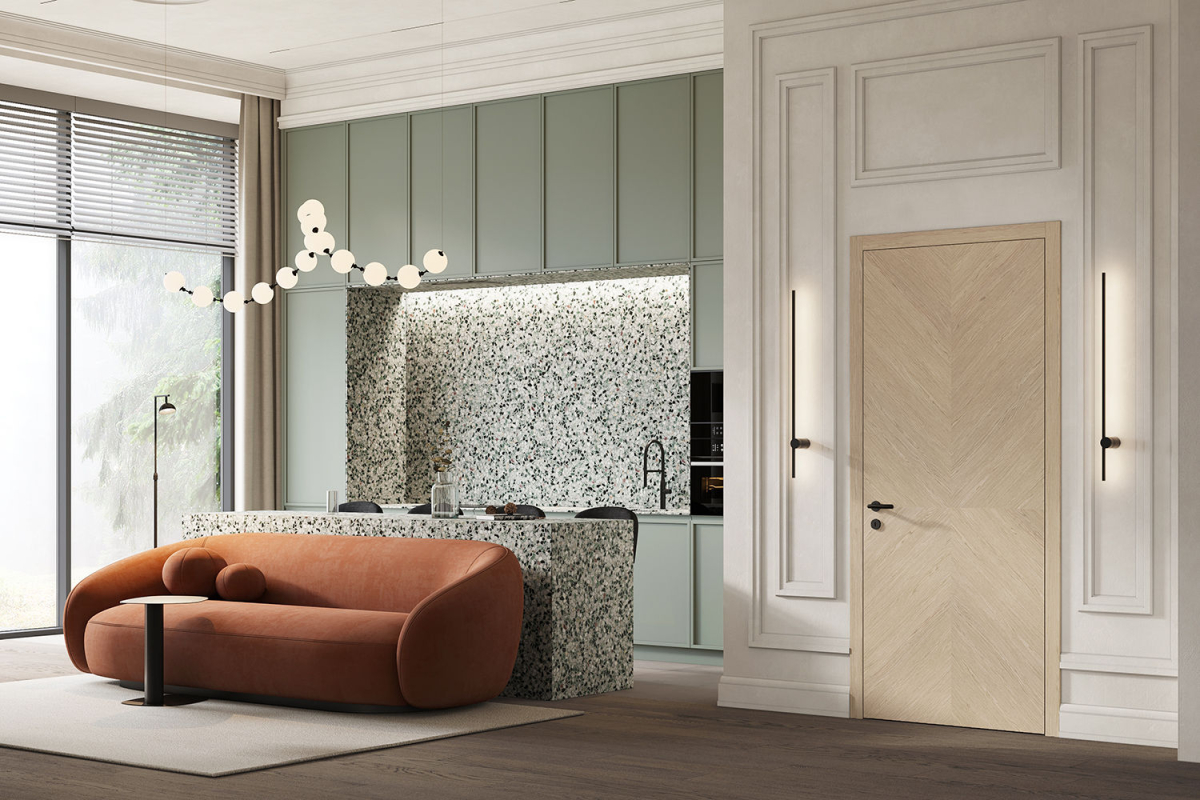 Наполнение: Smart Core — это инновационный, запатентованный заводом Belwooddoors экологически чистый материал из древесных волокон, который отвечает за звукоизоляцию и сохранение тепла внутри комнаты.