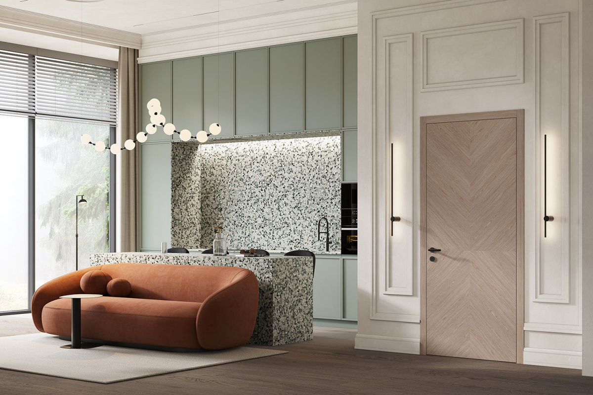 Наполнение: Smart Core — это инновационный, запатентованный заводом Belwooddoors экологически чистый материал из древесных волокон, который отвечает за звукоизоляцию и сохранение тепла внутри комнаты.